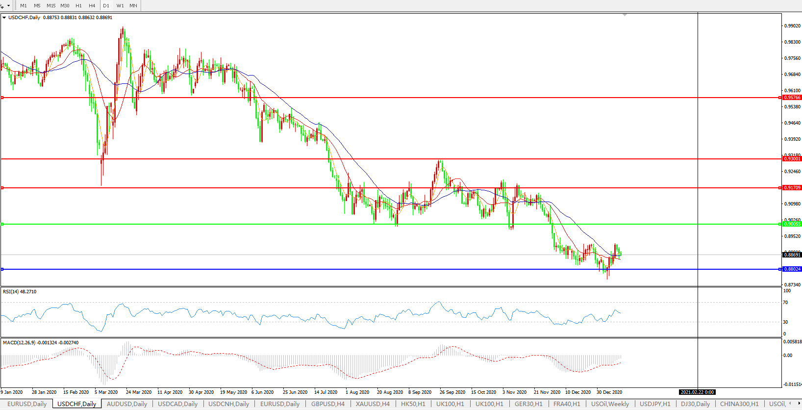 美元兑瑞郎USDCHF 日线图: