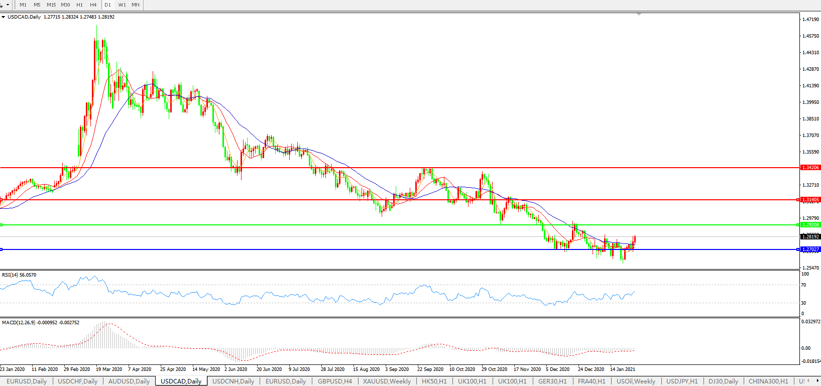 美元兑加元USDCAD 日线图: