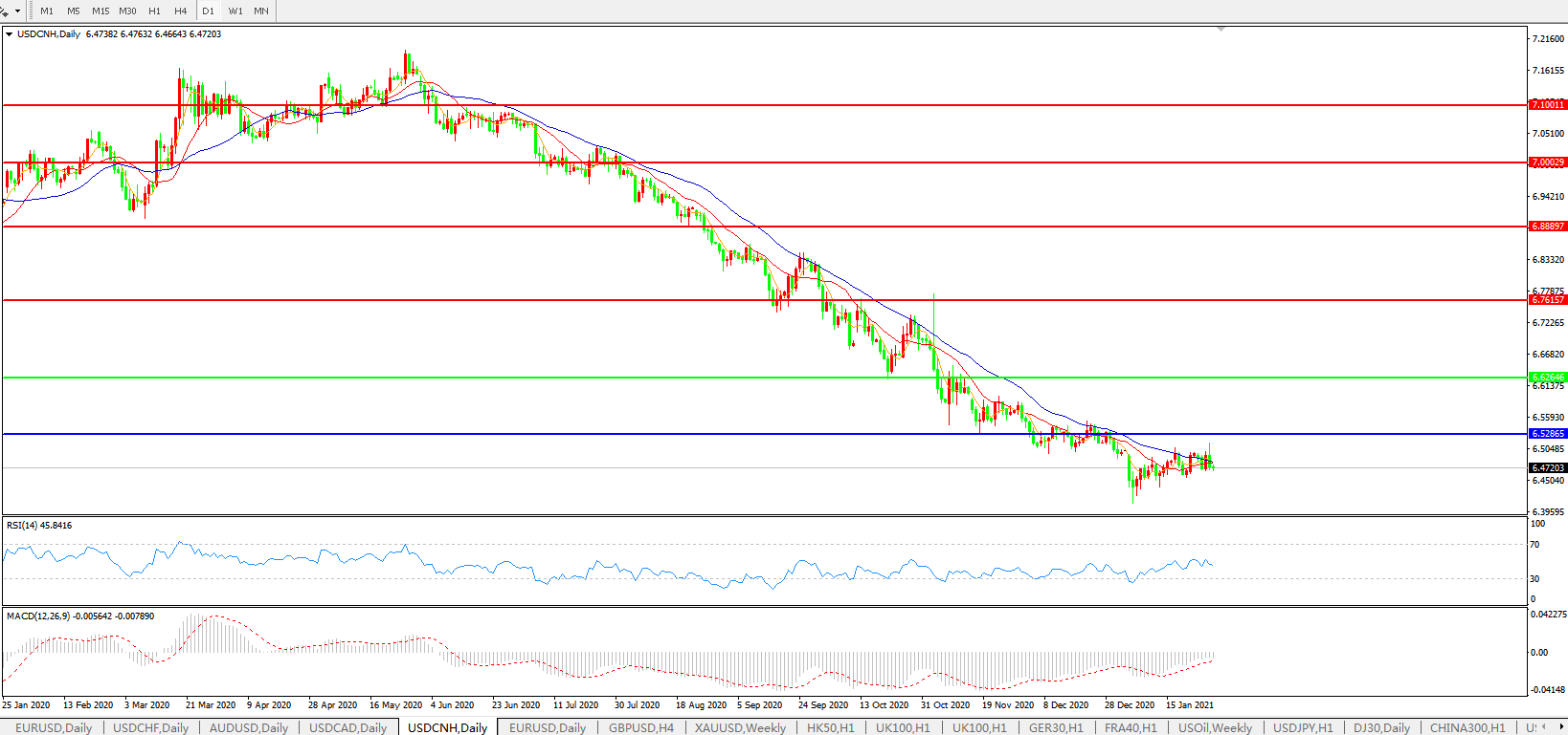 备选策略: 在6.6265之上,看涨,目标价位为6.7615,然后为6.8889。