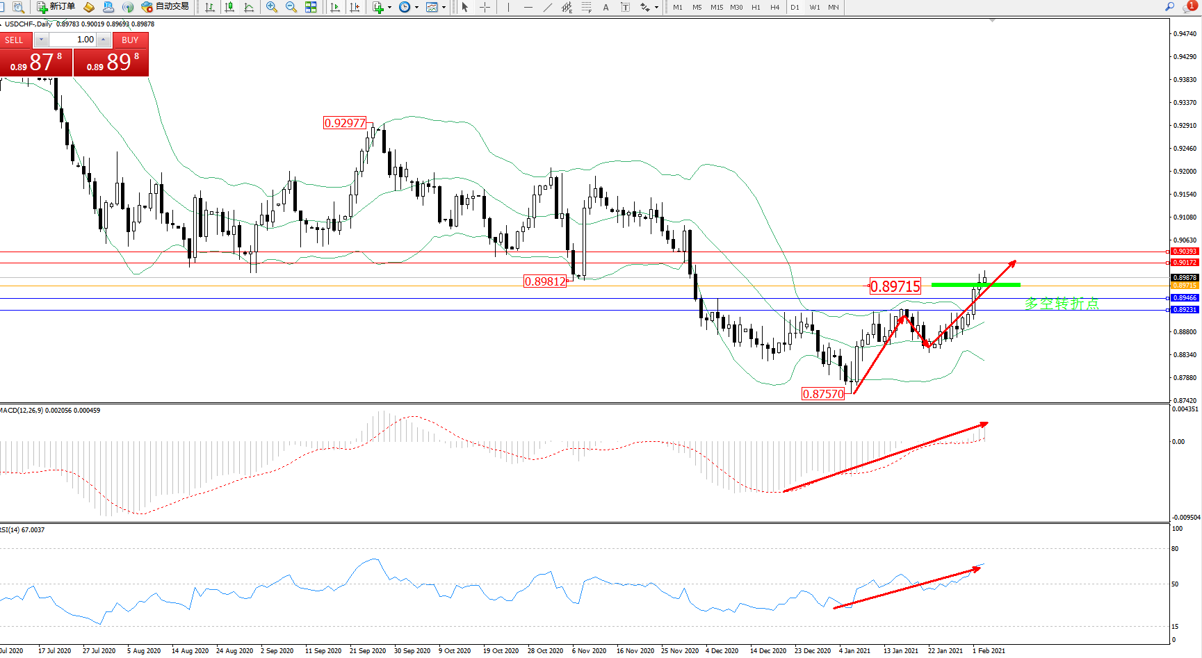 支撑位:0.89466、0.89231