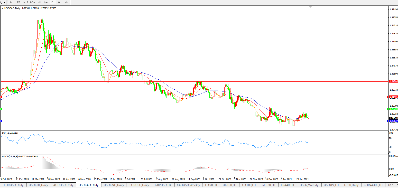 美元兑加元USDCAD 日线图: