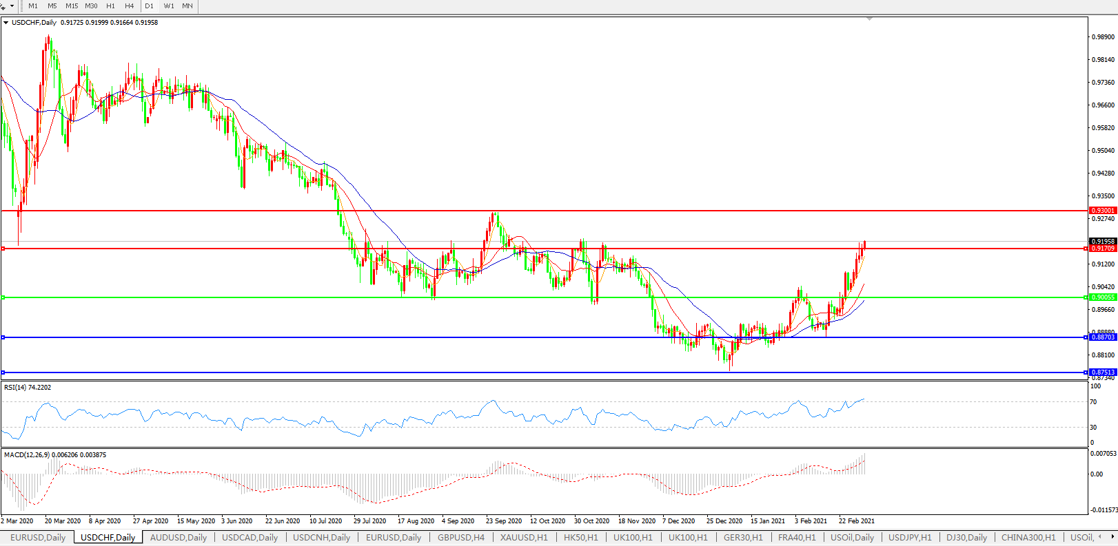 美元兑瑞郎USDCHF 日线图: