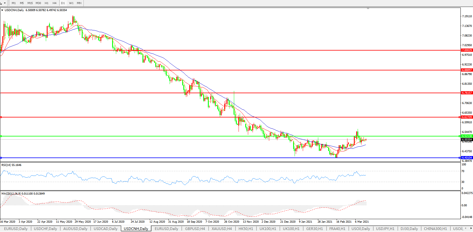 美元兑人民币USDCNH    日线图:
