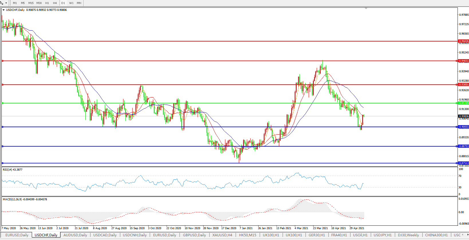 美元兑瑞郎USDCHF 日线图:
