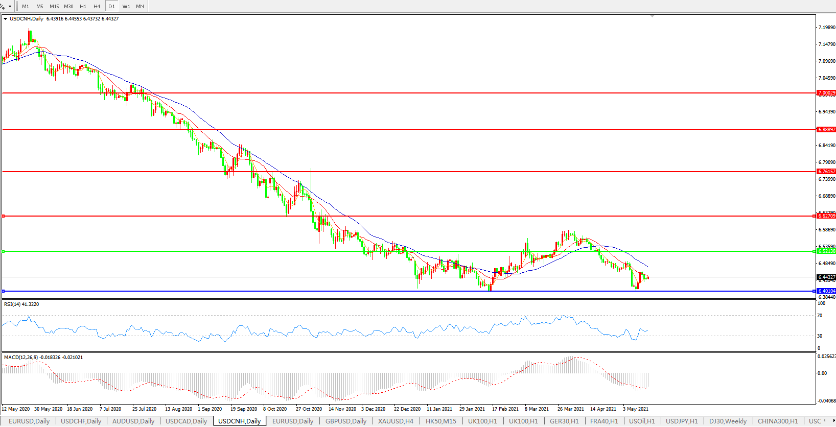美元兑人民币USDCNH 日线图: