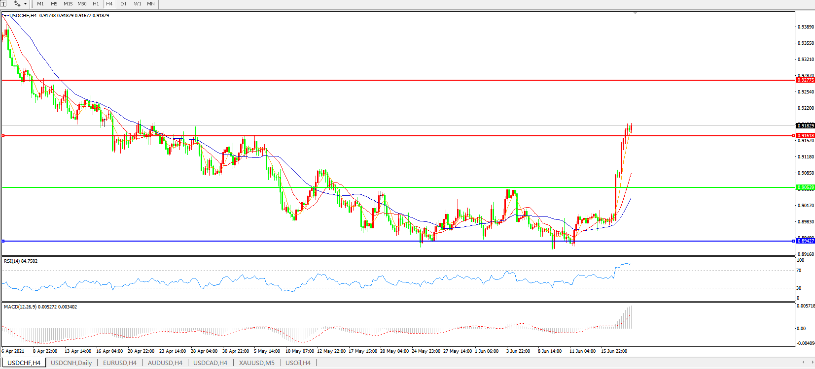 美元兑瑞郎USDCHF 4小时图: