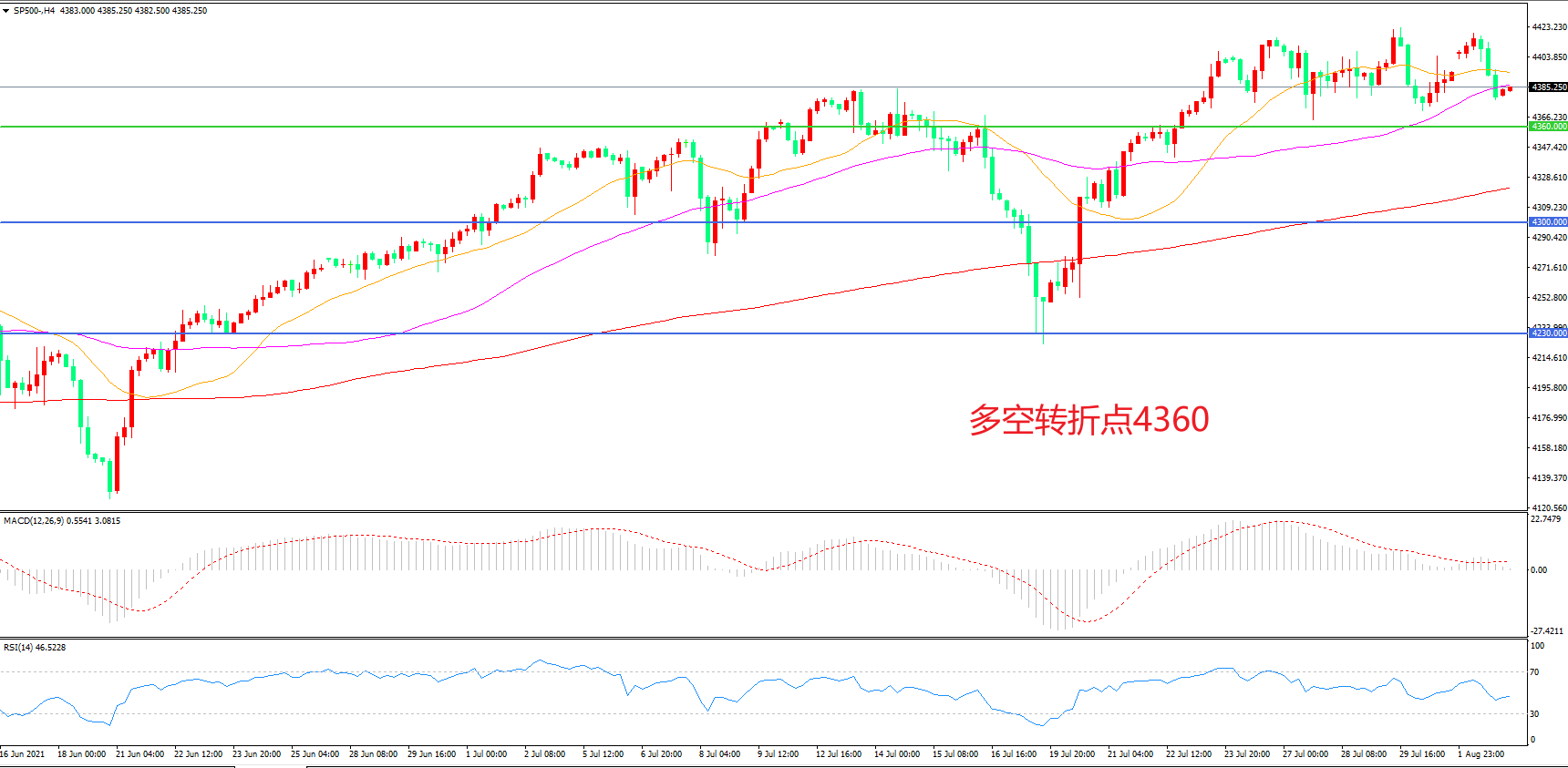 多空转折点:4360.00