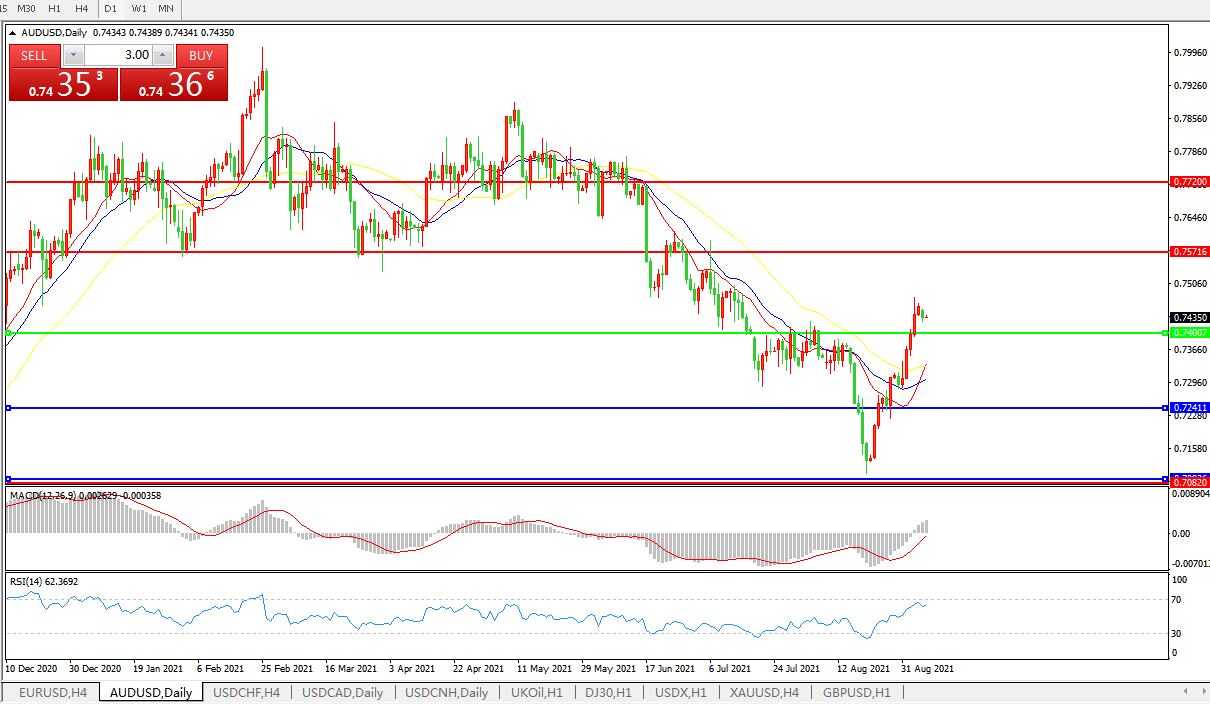 交易策略:0.7400上方看涨,目标0.7570、0.7720