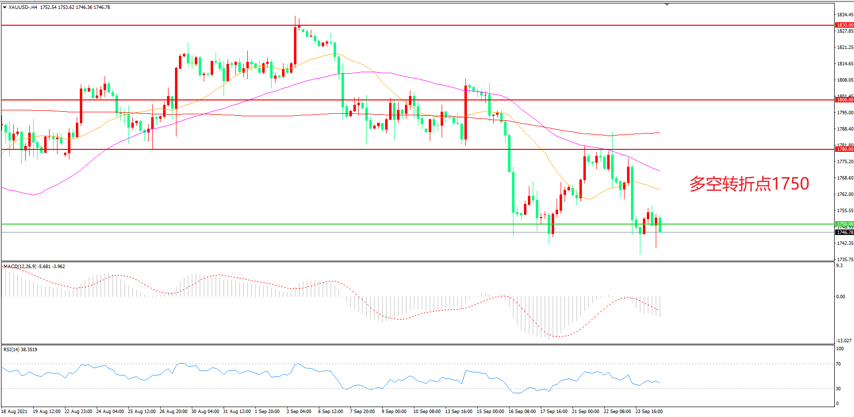 交易策略:在1750.00之下看跌,目标1720.00 1700.00