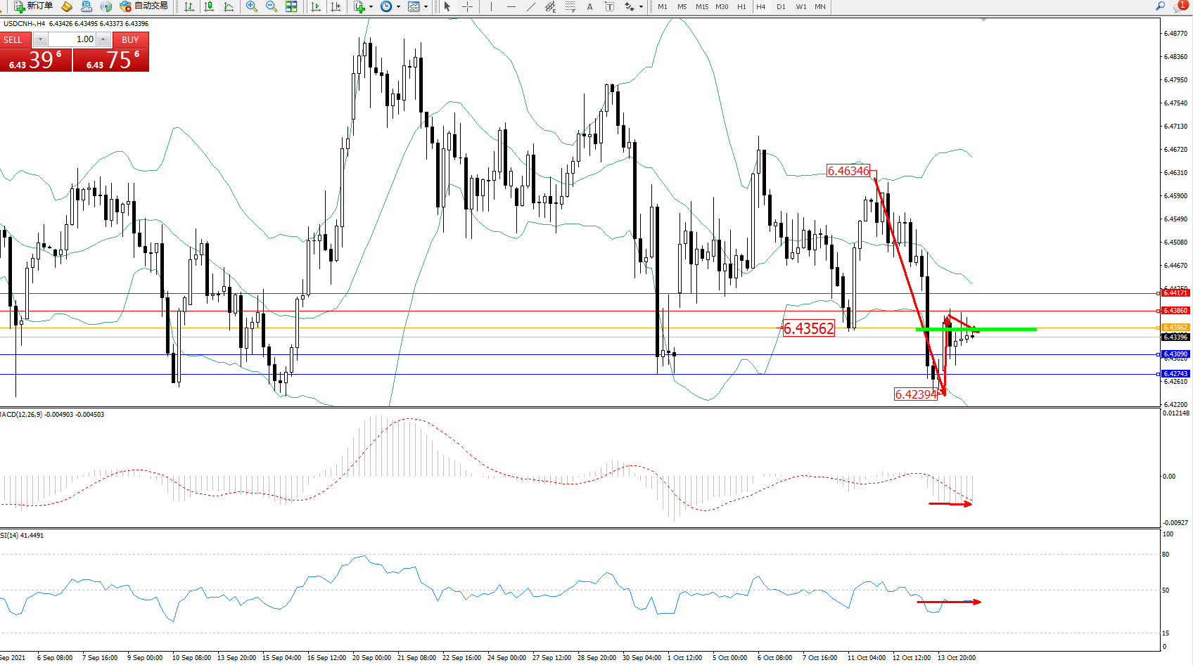 交易策略:6.43562下方看跌,目标6.43090、6.42743