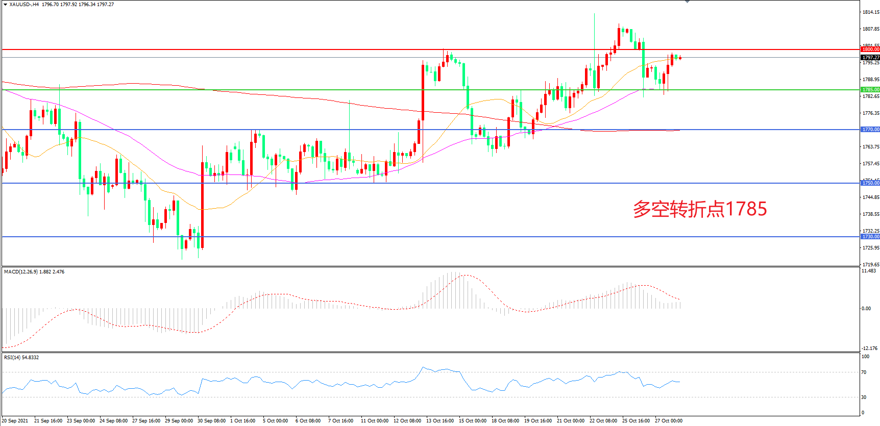 多空转折点:1785.00
