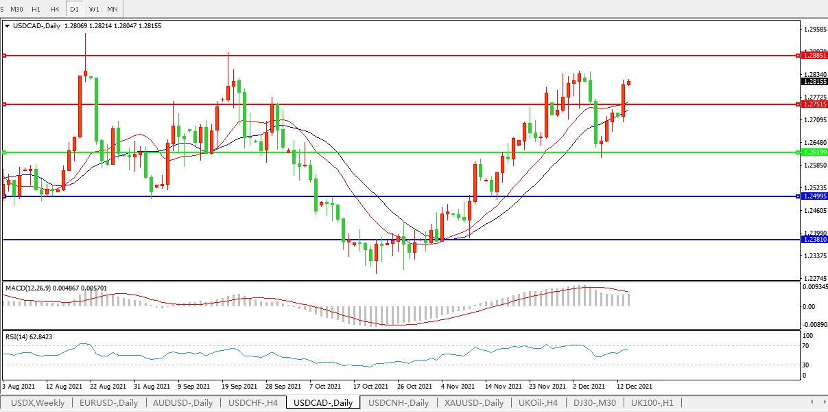 美元兑加元USDCAD 日线图: