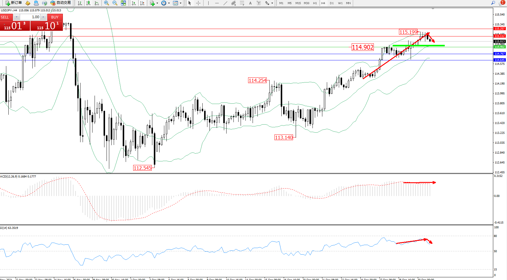 备选策略:114.902下方看跌,目标114.767、114.645