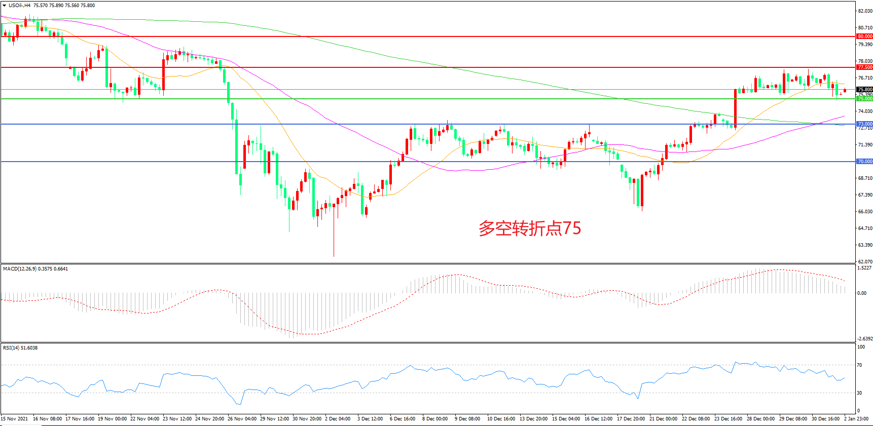 多空转折点:75.00