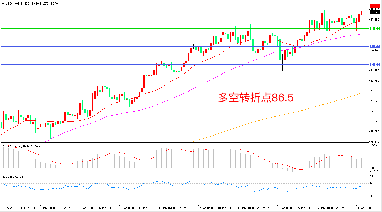 交易策略:在86.50之上看涨,目标89..00 92.00