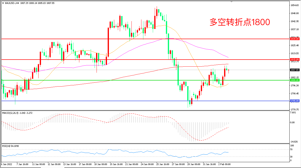 交易策略:在1800.00之上看涨,目标1815.00 1830.00