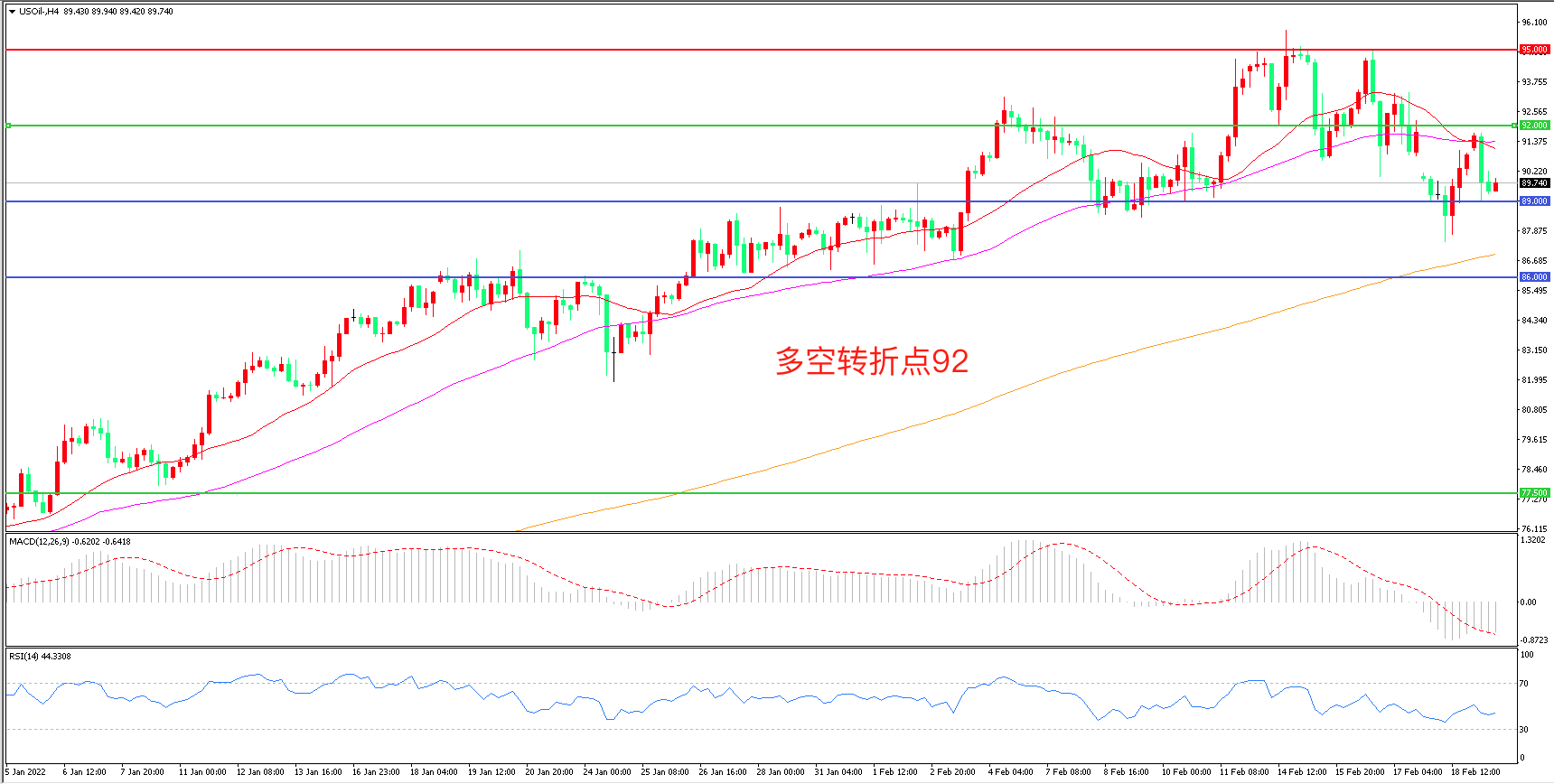 多空转折点:92.00