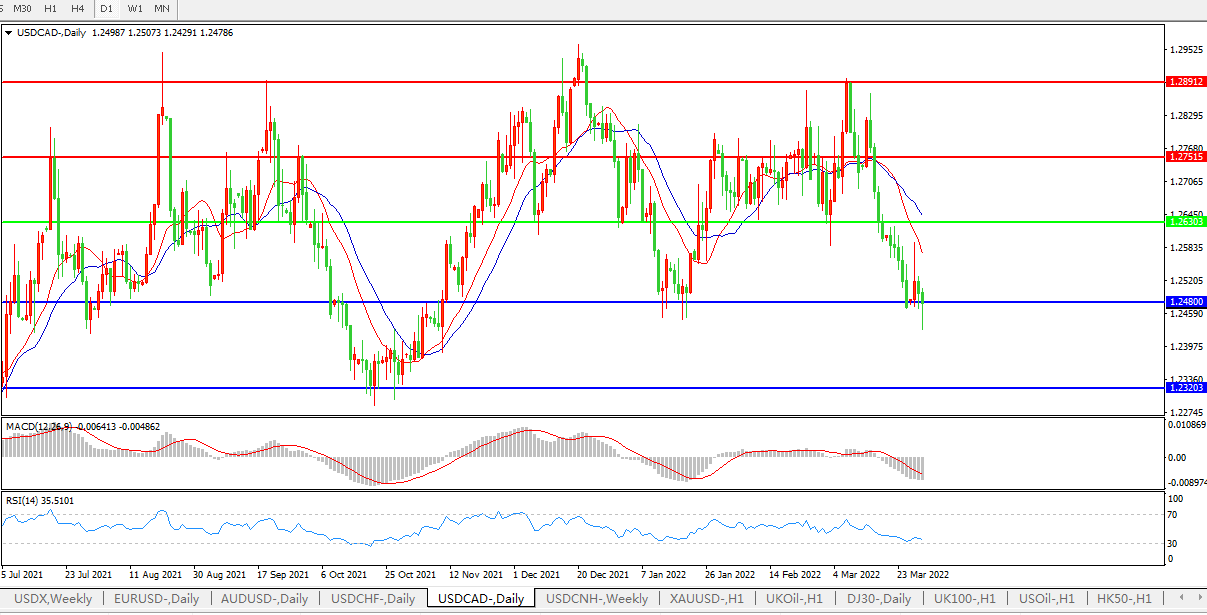 美元兑加元USDCAD 日线图: