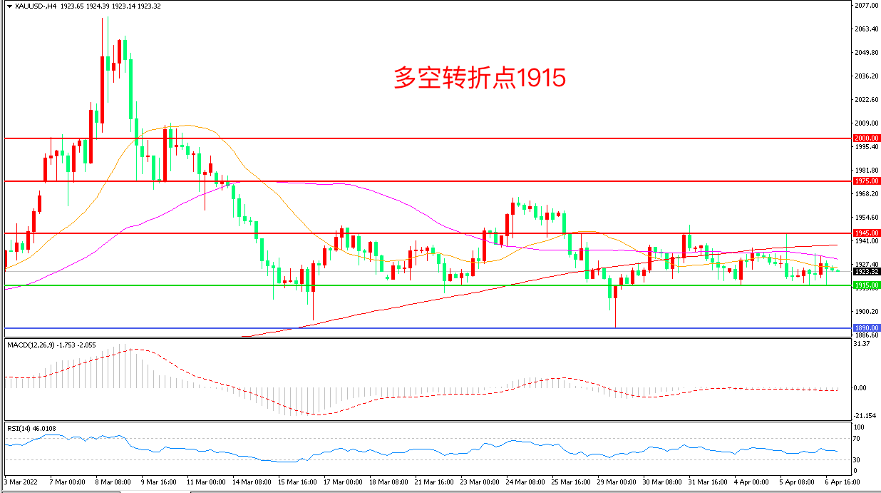 周三(4月6日),美联储会议纪要称,一次或多次加息50个基点可能是有保障的,缩表可能会很快开启,但欧美宣布对俄罗斯新一轮的制裁措施推高了市场中的避险情绪,多空因素交织下,金价延续窄幅震荡,收报1923.92美元/盎司。近期美联储鹰派愈发激进给金价带来巨大压力,但俄乌局势的恶化让空头心有忌惮,在没有决定性因素的影响下,金价延续低位震荡概率较大。