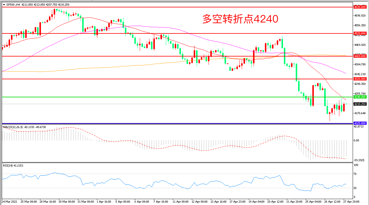 交易策略:在4240.00之下看跌,目标4125.00      4010.00