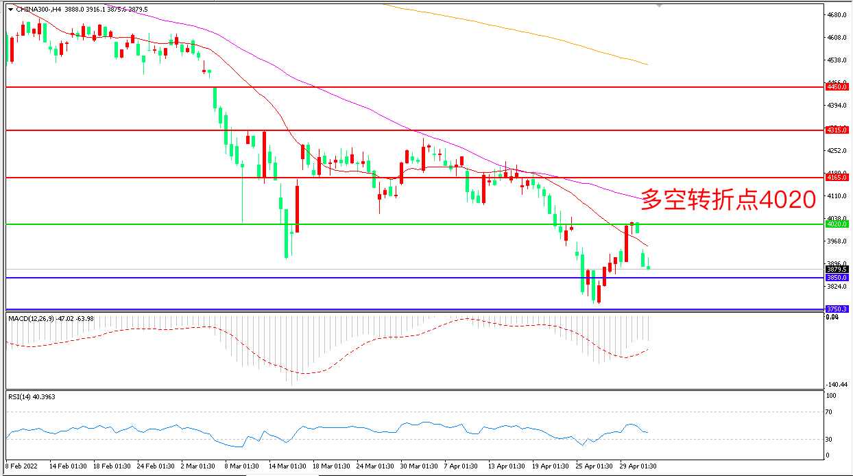 交易策略:在4020.00之下看跌,目标3850.00 3750.00