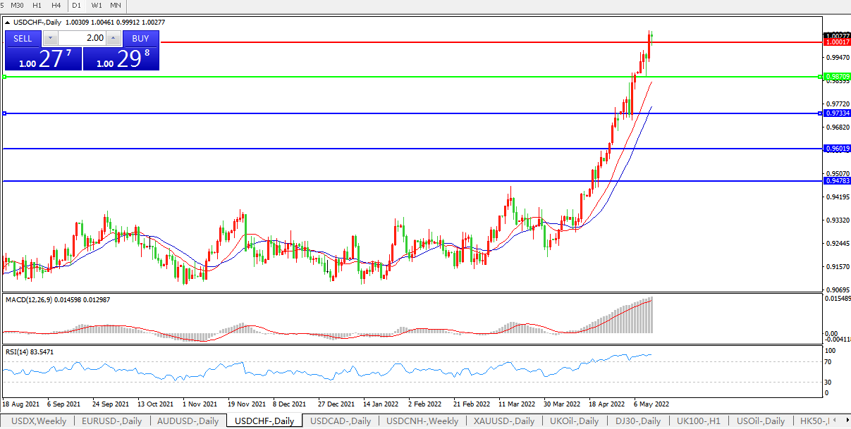 通胀高烧不断支撑,美元兑瑞郎继续冲高