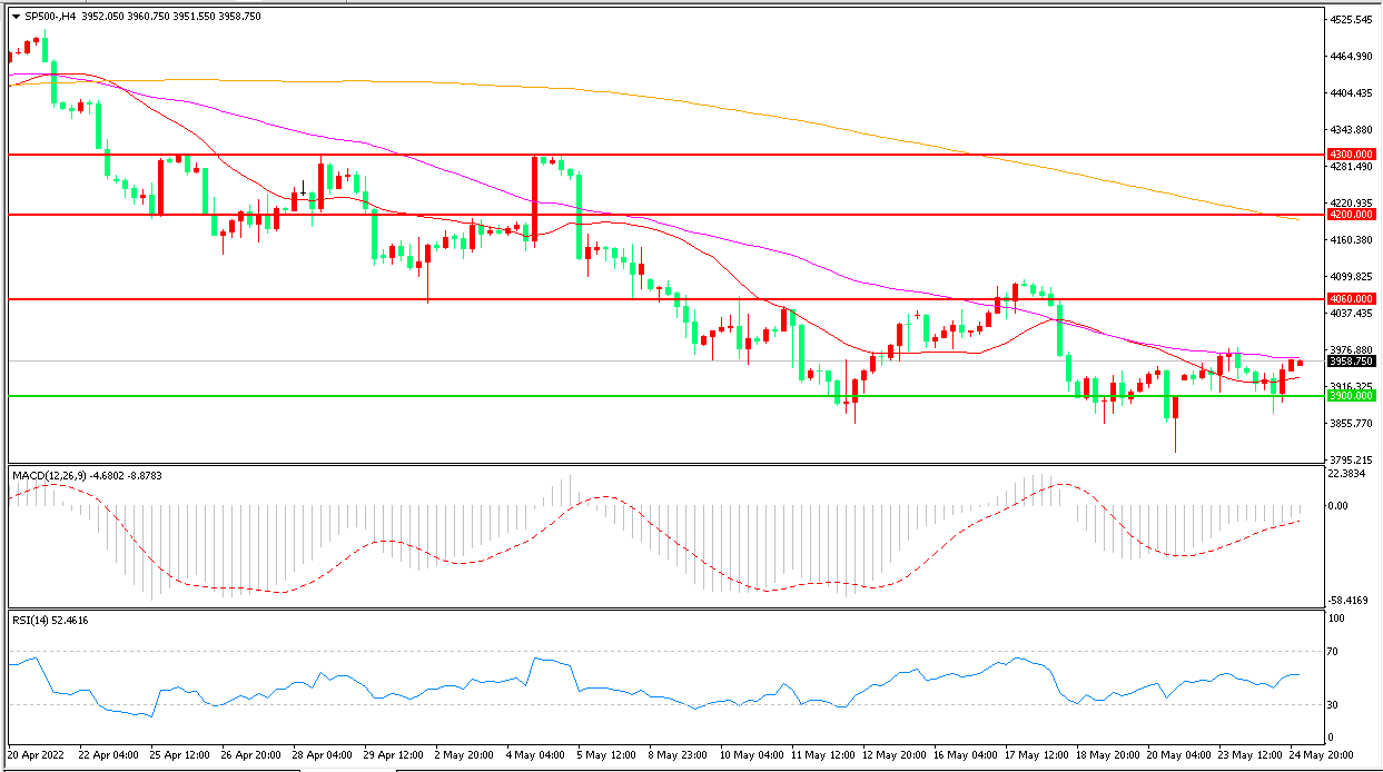 4小时图看,标普500以均线系统为依托强势拉升,整体表现偏强,4060成为多空分水岭,MACD红柱增加,RSI指标走平,日内震荡上行概率较大。