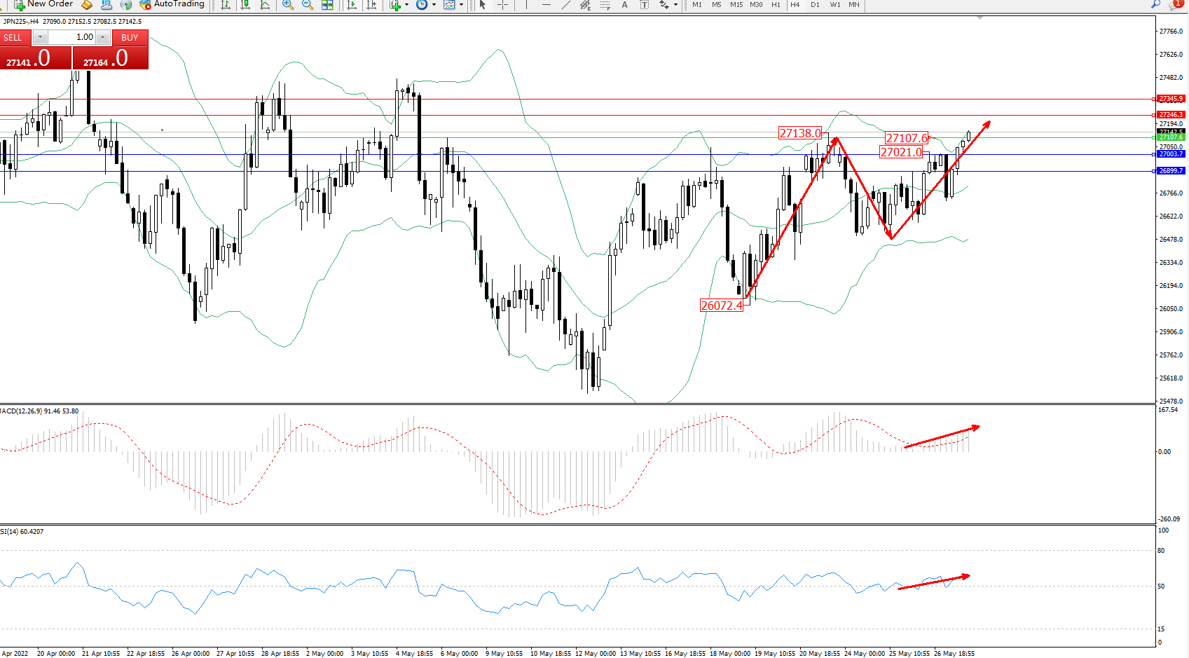 交易策略:27107上方看涨,目标27246、27345