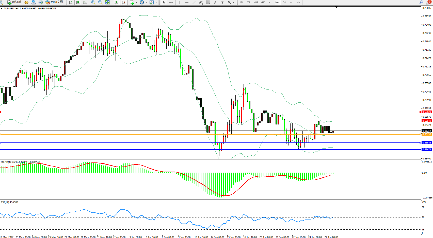 澳元美元AUDUSD——4小时K线图显示: