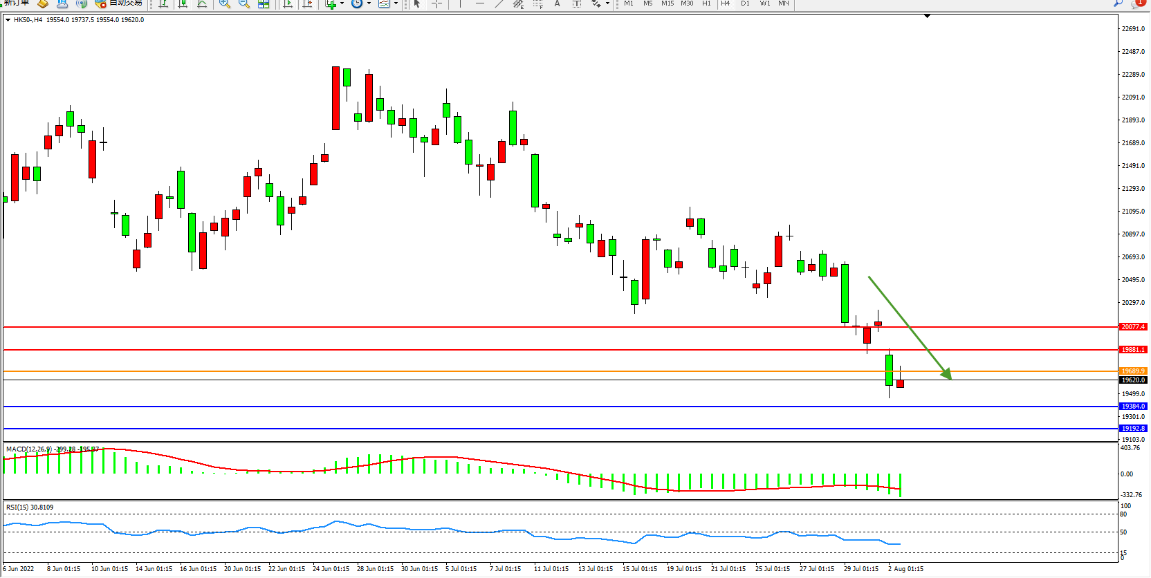 恒指HK50 4小时图