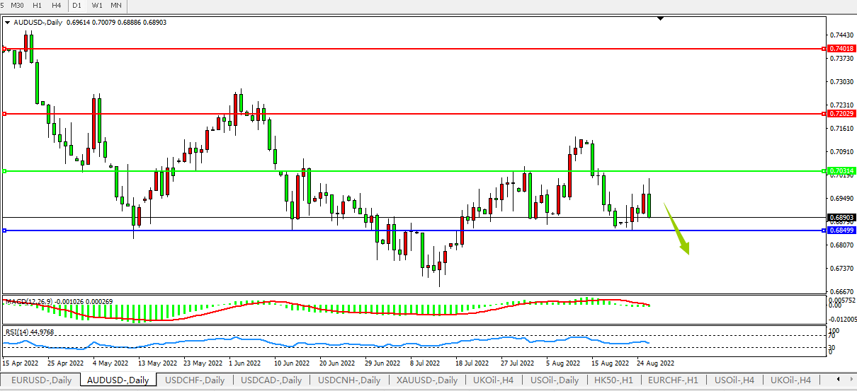 交易策略:0.7030下方看跌,目标0.6850、0.6700
