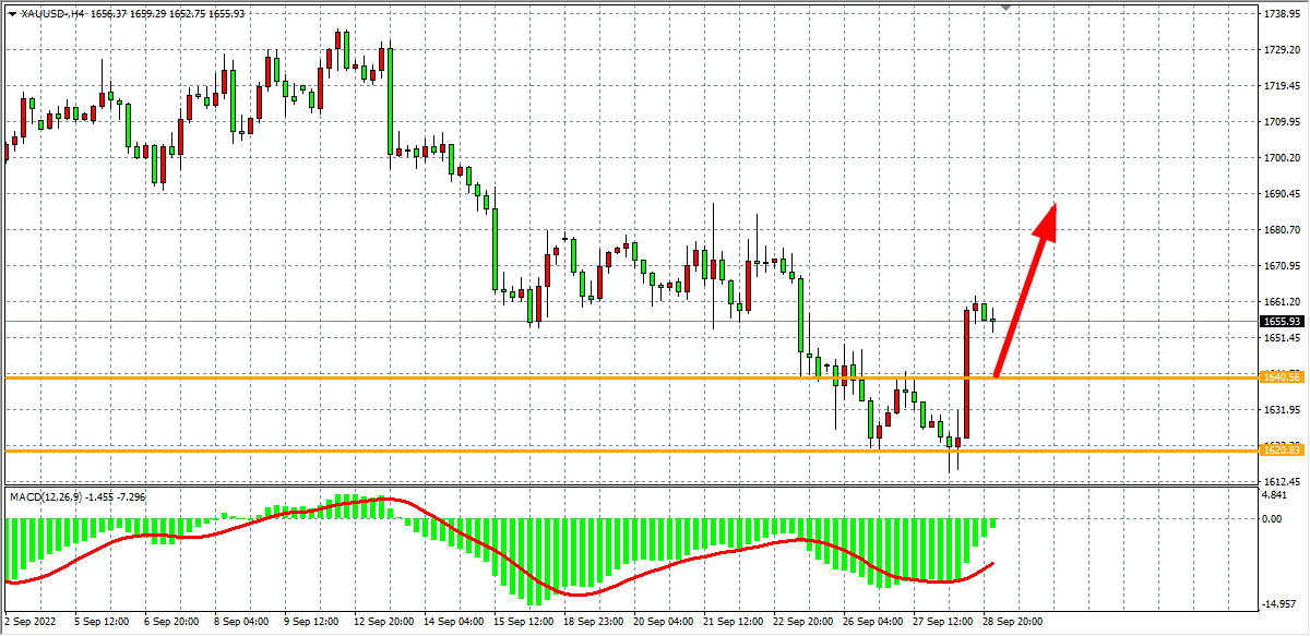 4小时图看,金价于1620一线获得支撑开启反弹,其后上破1640阻力后,短期底部已形成,MACD于零轴之下开始缩量即将上穿零轴,显示行情延续反弹需求,日内在1640之上看涨,目标1670-1690。