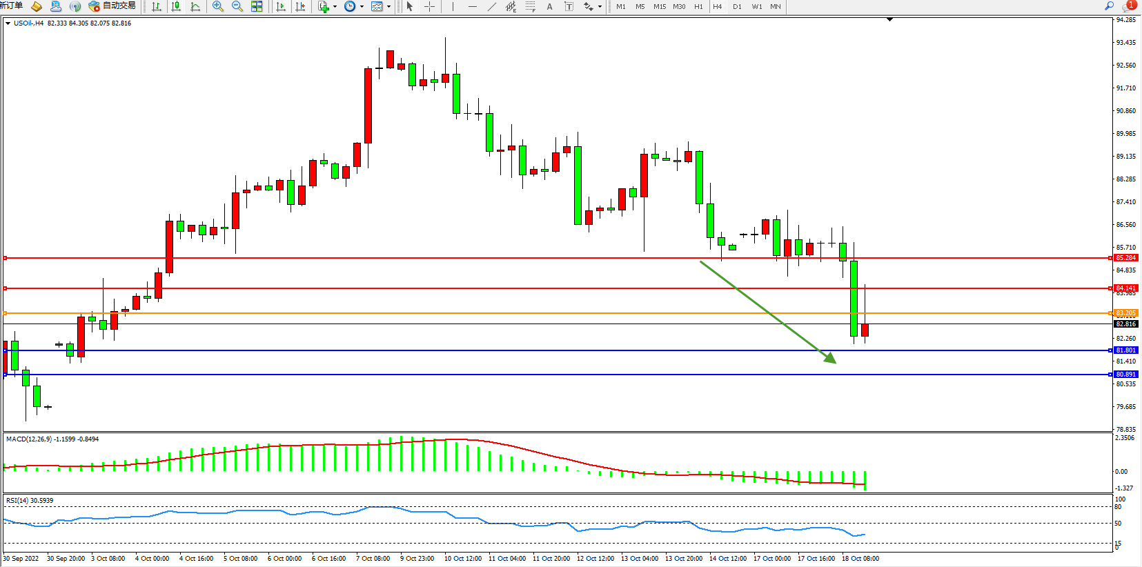原油USOil——4小时K线图显示: