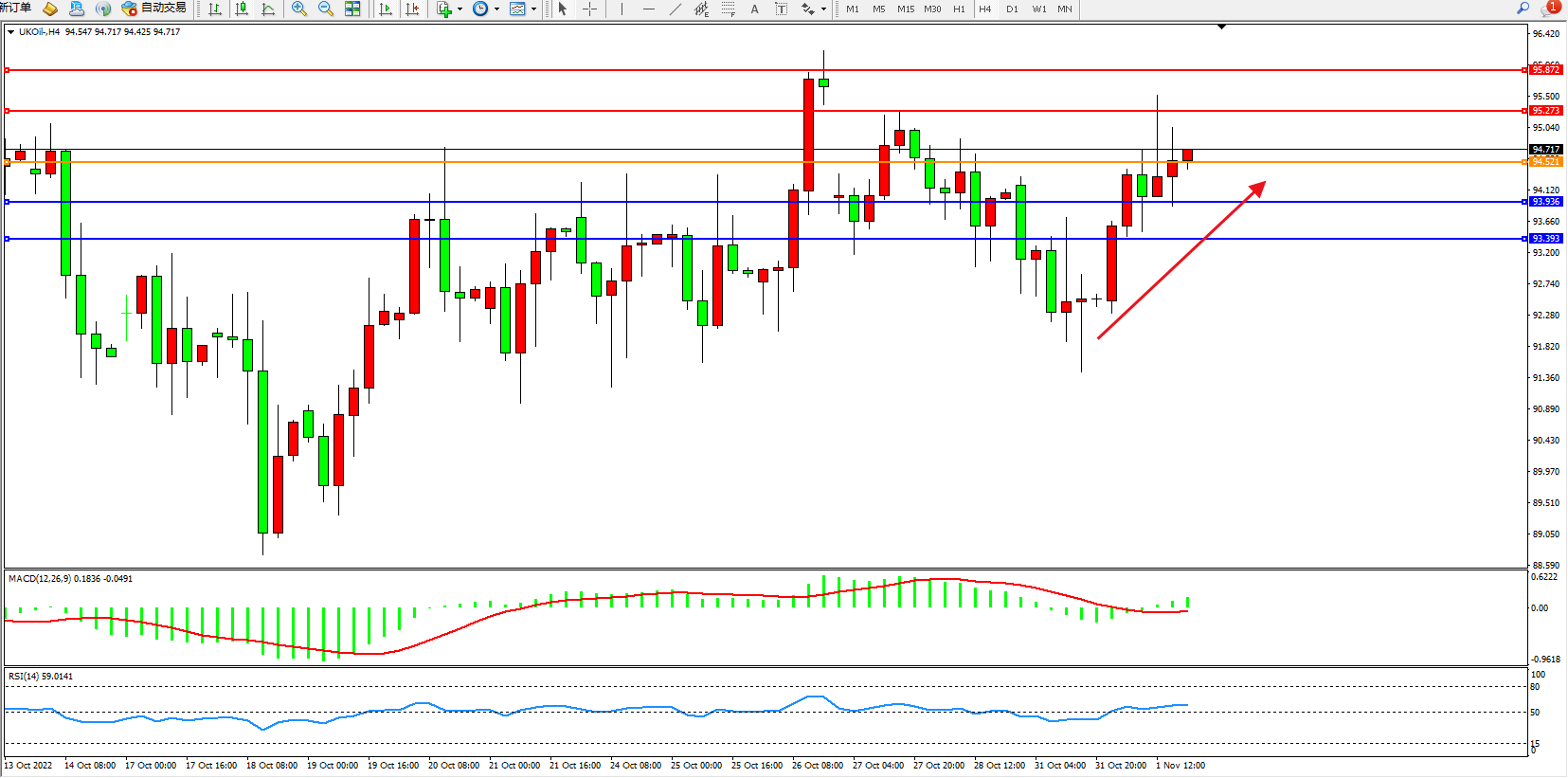 布油UKOil——4小时K线图显示: