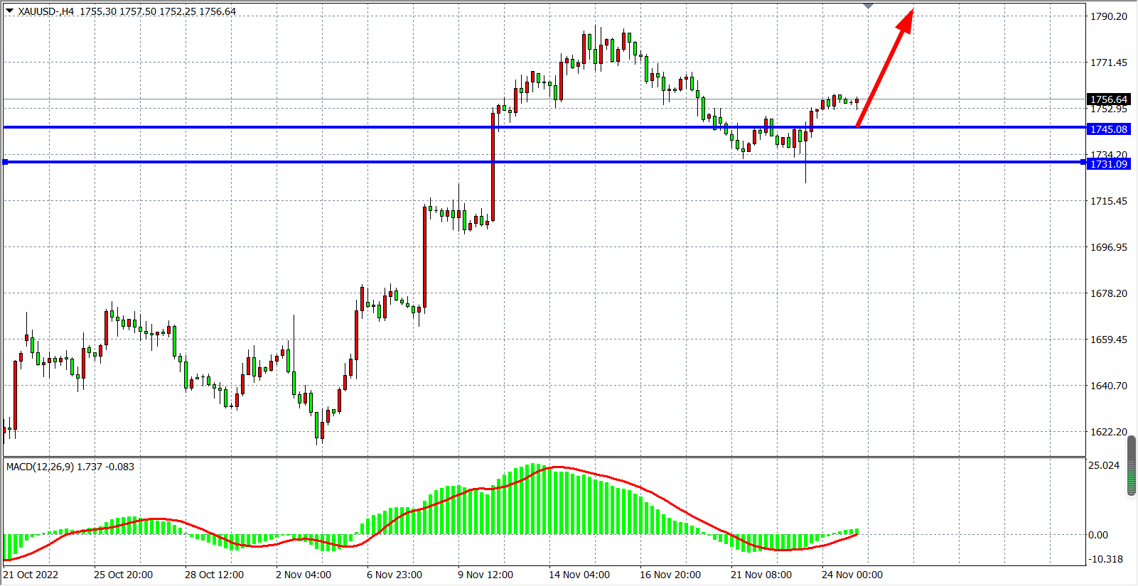 备选策略:在1745.00 之上看涨,目标1765.00 1785.00
