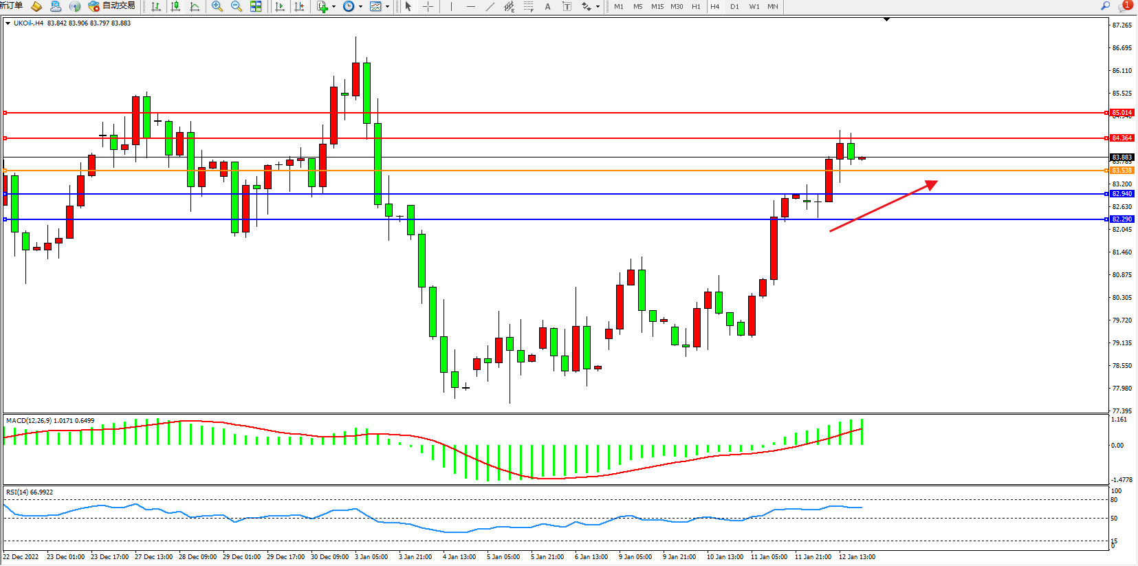 布油UKOil——4小时K线图显示: