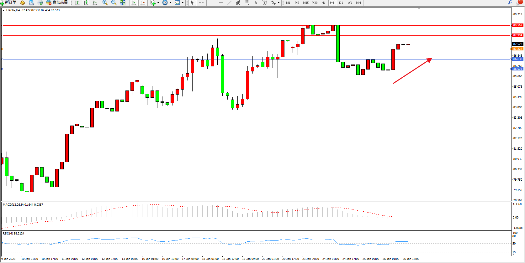 布油UKOil——4小时K线图显示: