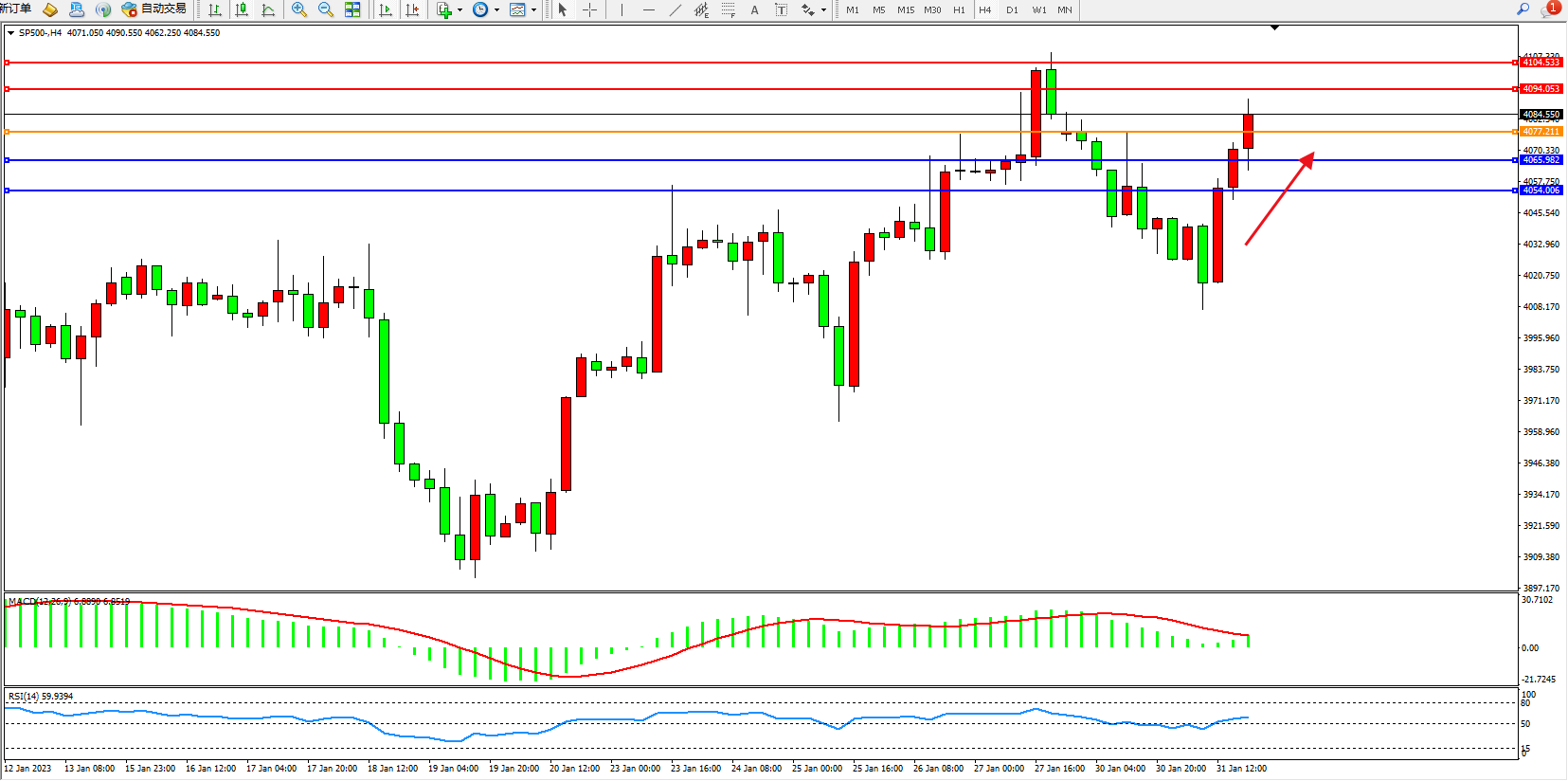 标普500指数1月31日(周二)收盘上涨58.49点,涨幅1.46%,报4076.26点;美联储若在工资增长和通胀方面表现出更为温和的姿态,美元可能会陷入困境,因为届时市场可能会更加坚定降息预期,除非美联储听起来让市场感到出人意料的强硬。