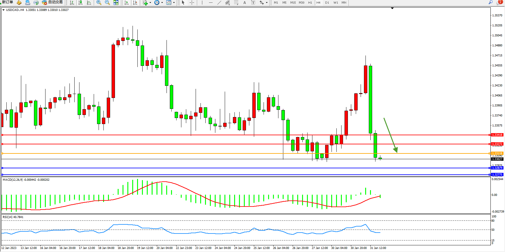美元加元USDCAD——4小时K线图显示: