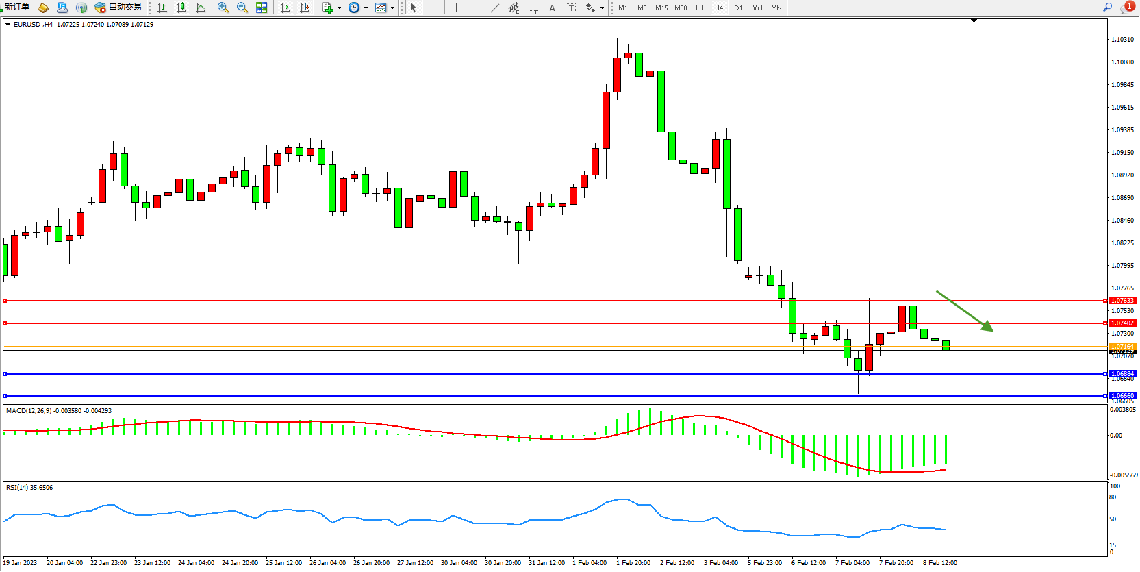 交易策略:1.07164下方看跌,目标1.06884、1.06660