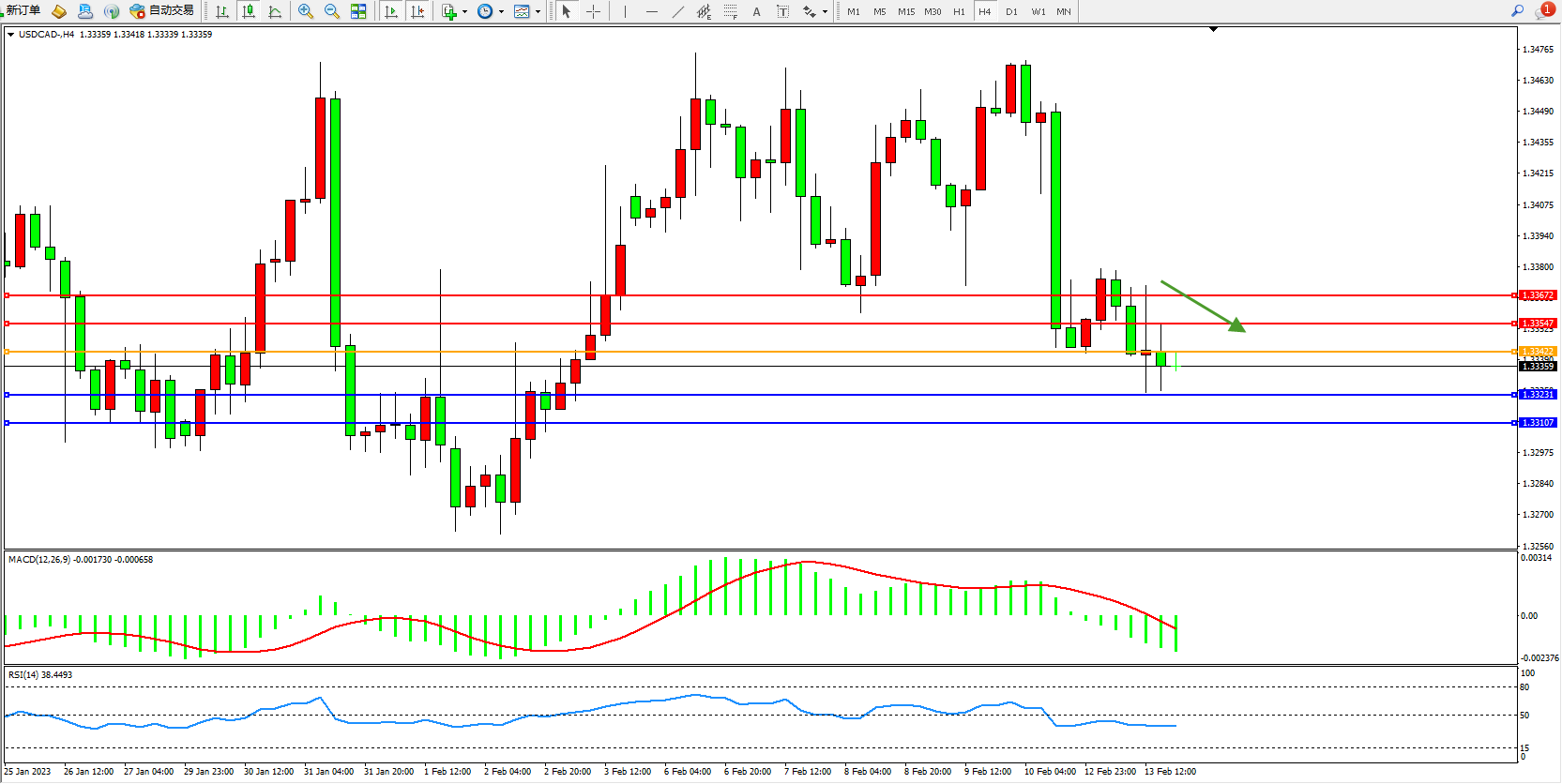 美元加元USDCAD——4小时K线图显示: