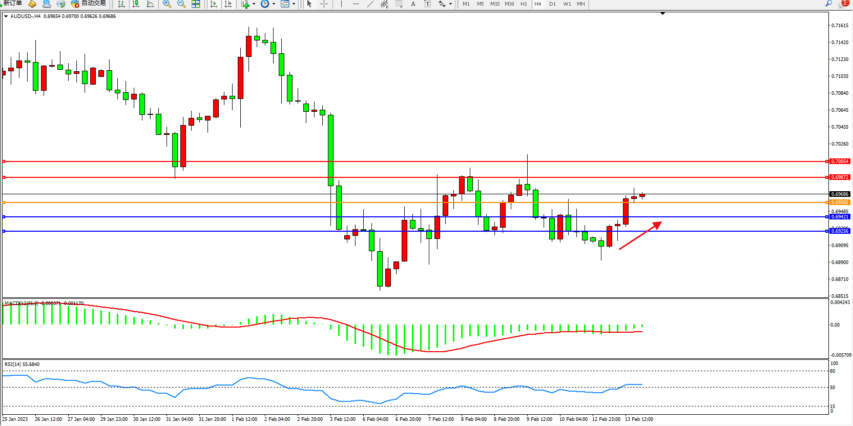 支撑:0.69421、0.69256