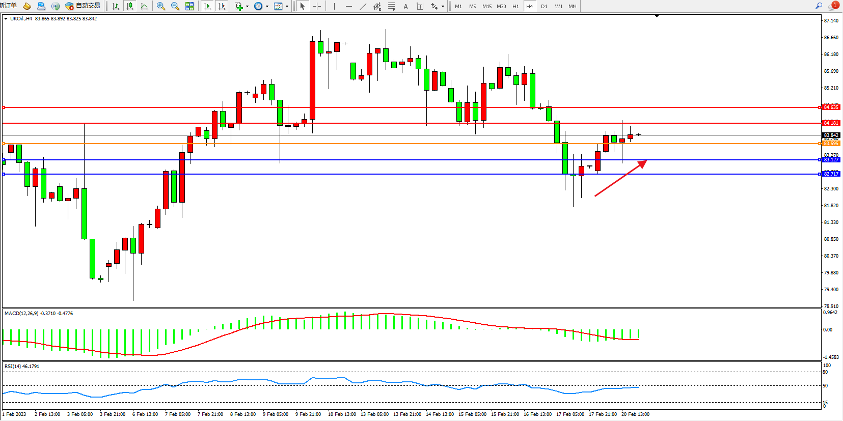 交易策略:83.595上方看涨,目标84.181、84.635