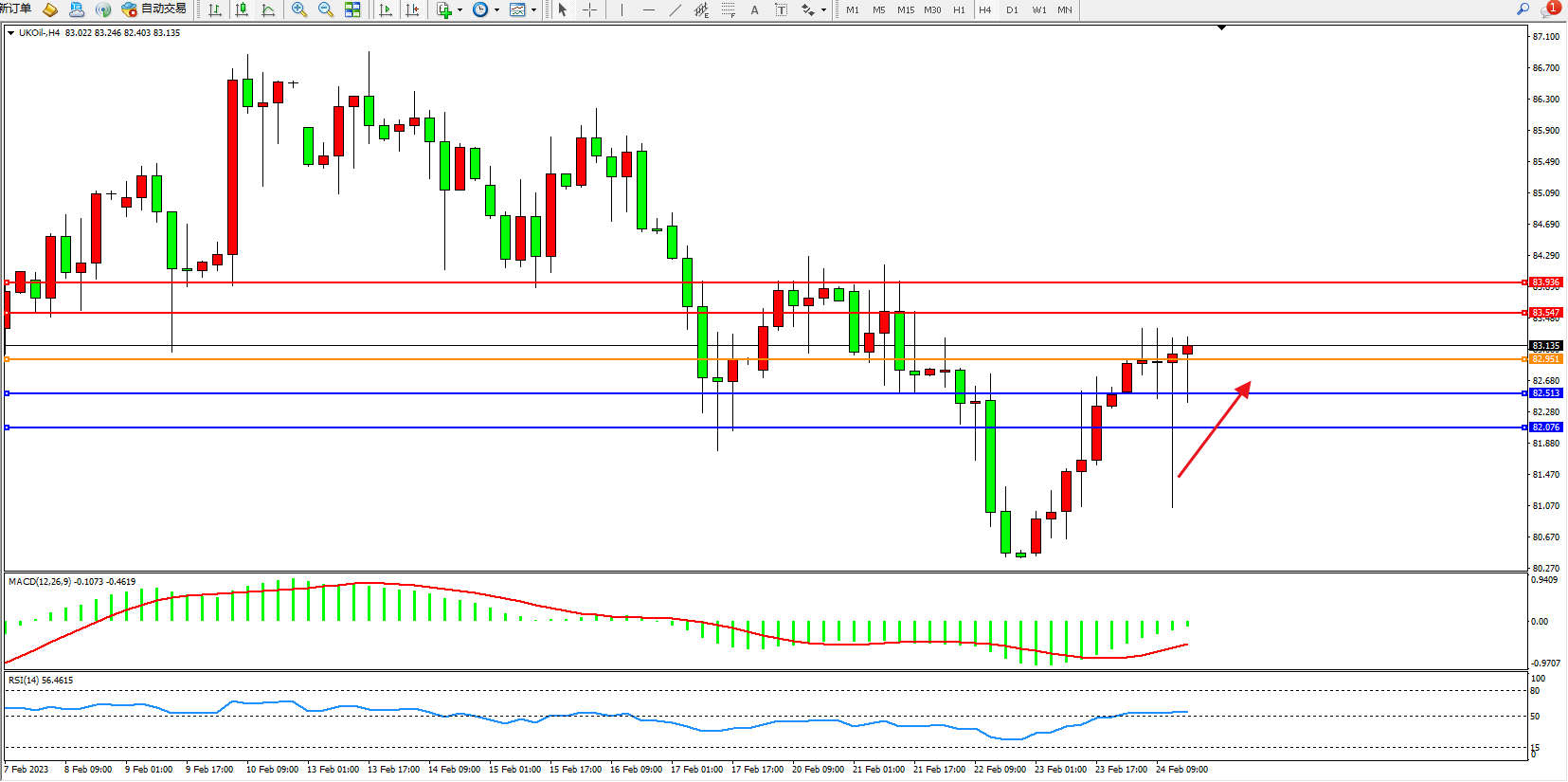 布油UKOil——4小时K线图显示: