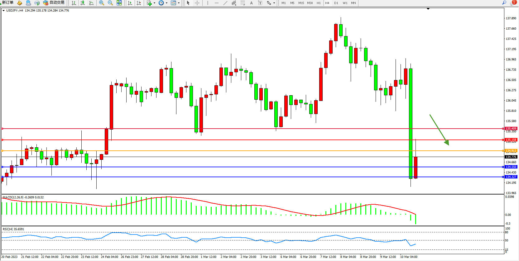 交易策略:134.913下方看跌,目标134.550 134.327