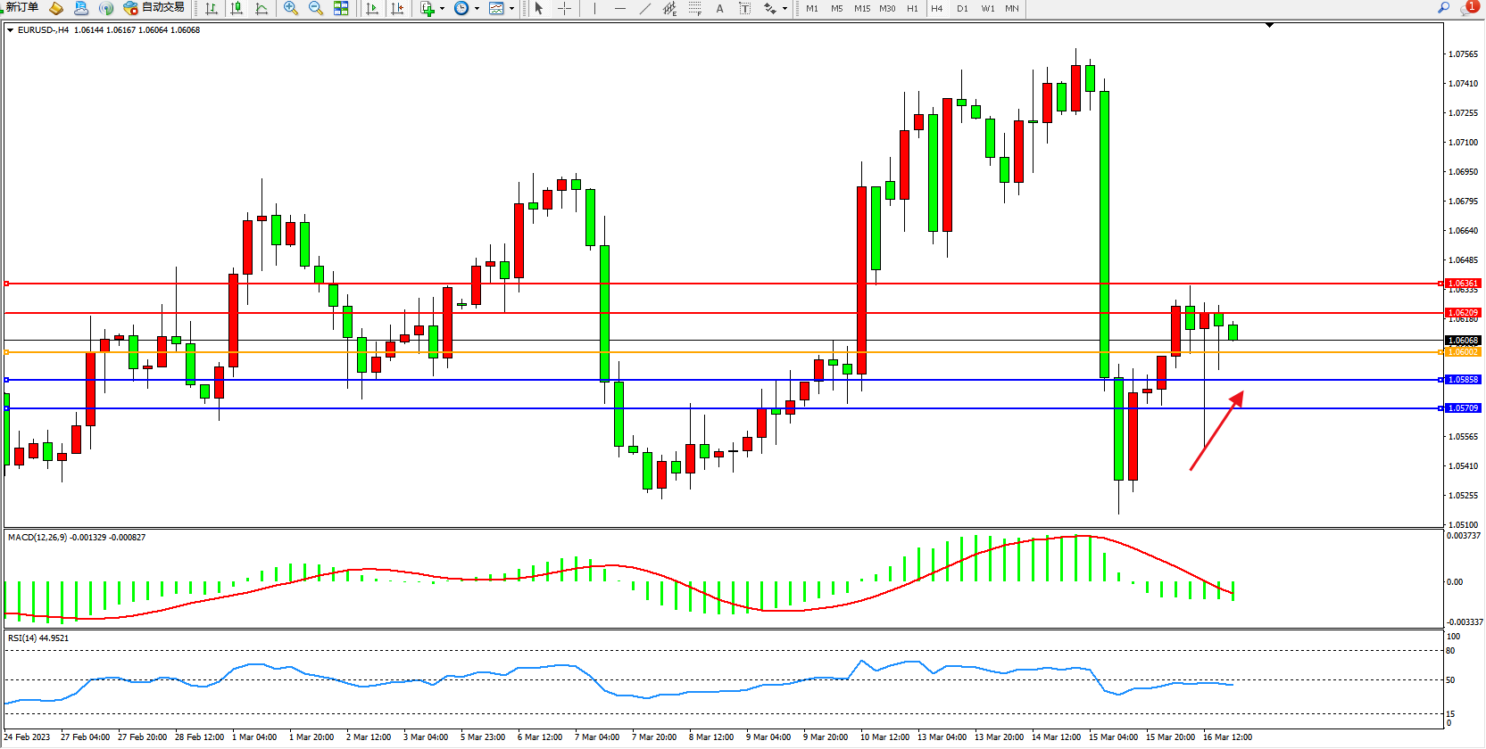 交易策略:1.06002上方看涨,目标1.06209  1.06361