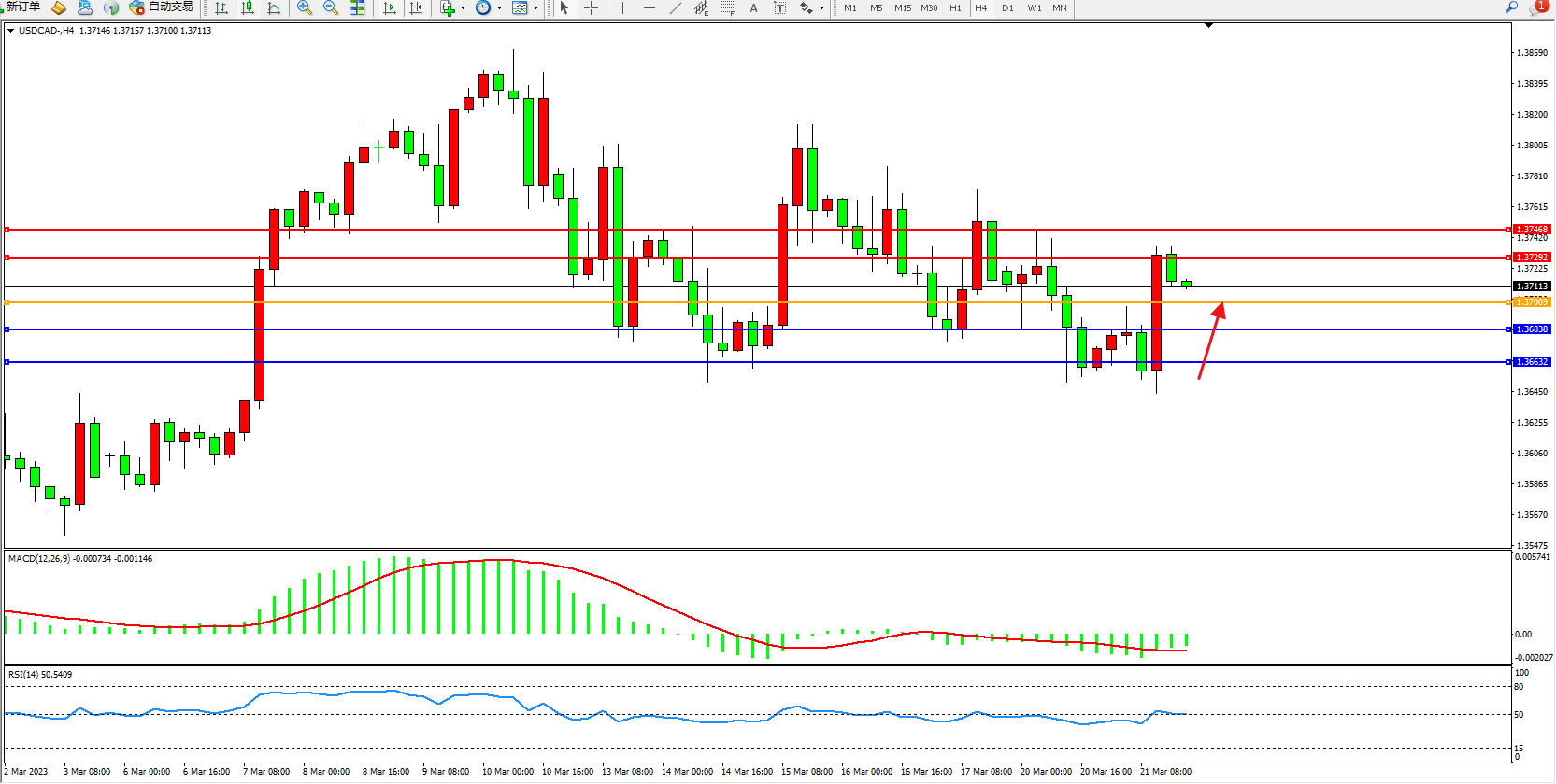 美元加元USDCAD——4小时K线图显示: