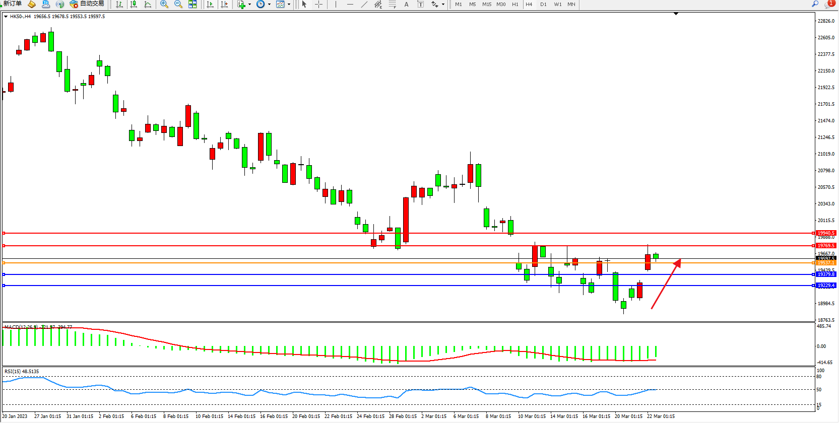 恒指HK50 4小时图