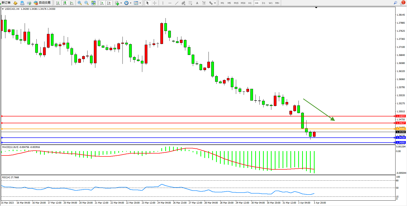 美元加元USDCAD——4小时K线图显示: