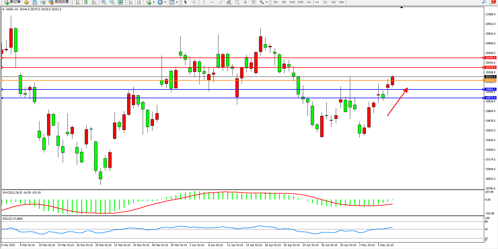 恒指HK50 4小时图